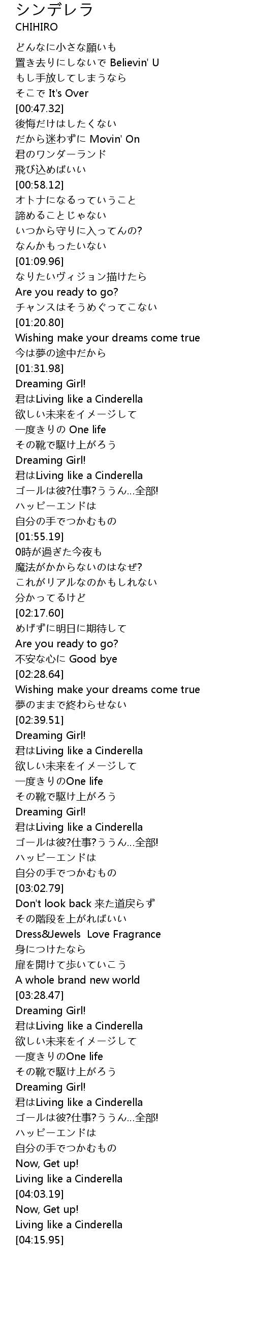 | [03:32.07] | 君はLiving like a Cinderella |
