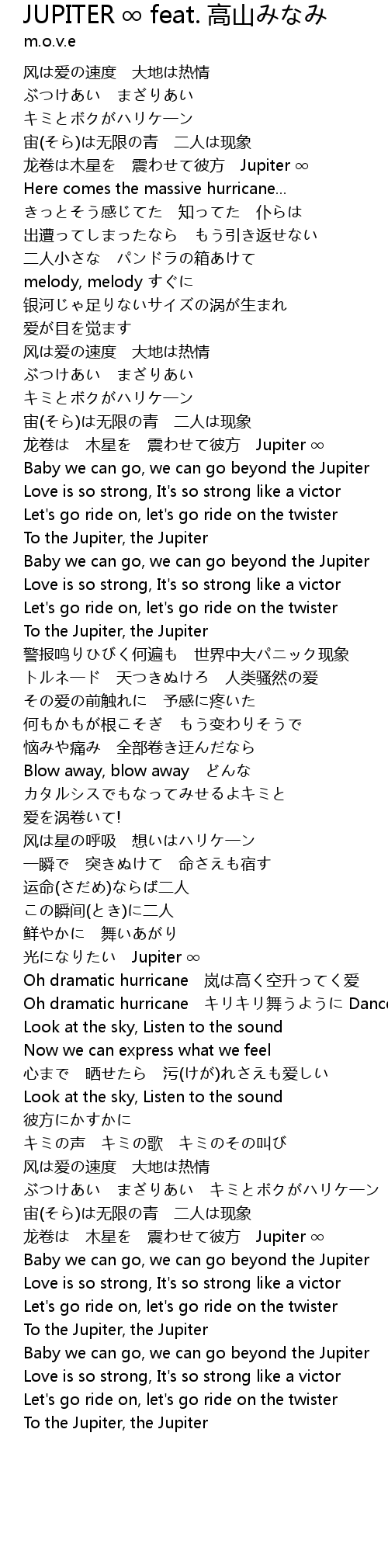 | Song | JUPITER ∞ feat. 高山みなみ |