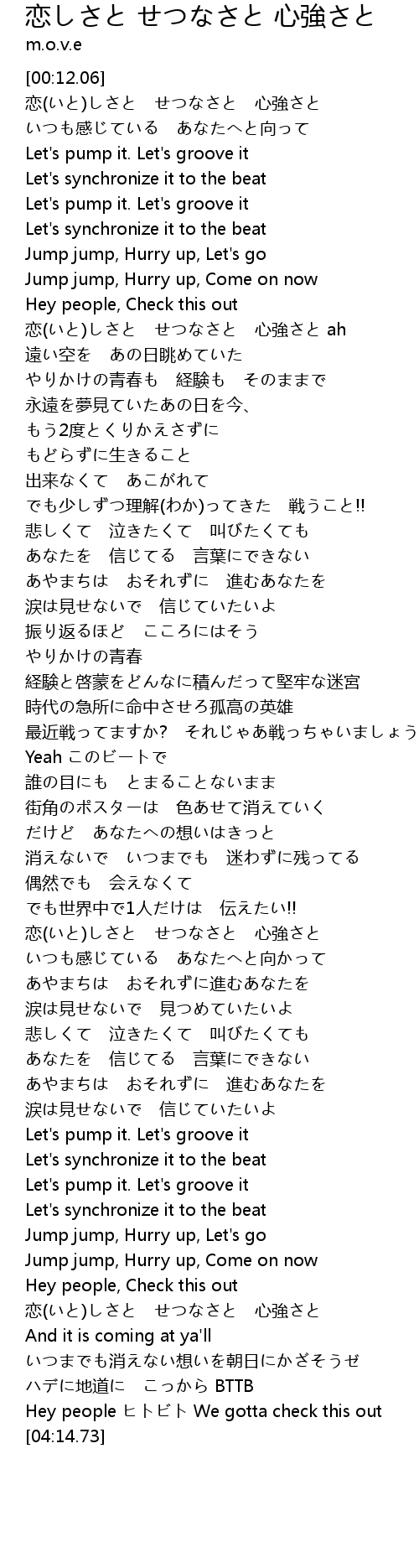 | [03:58.74] | 恋(いと)しさと せつなさと 心強さと |