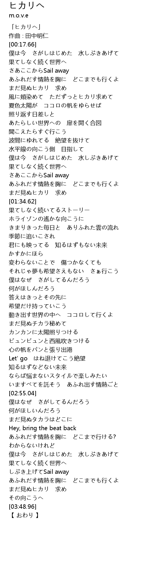 | [00:01.66] | 「ヒカリへ」 |