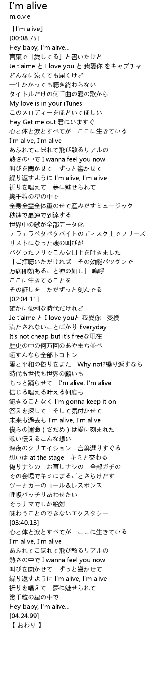 | [04:03.51] | 繰り返すように I'm alive, I'm alive |