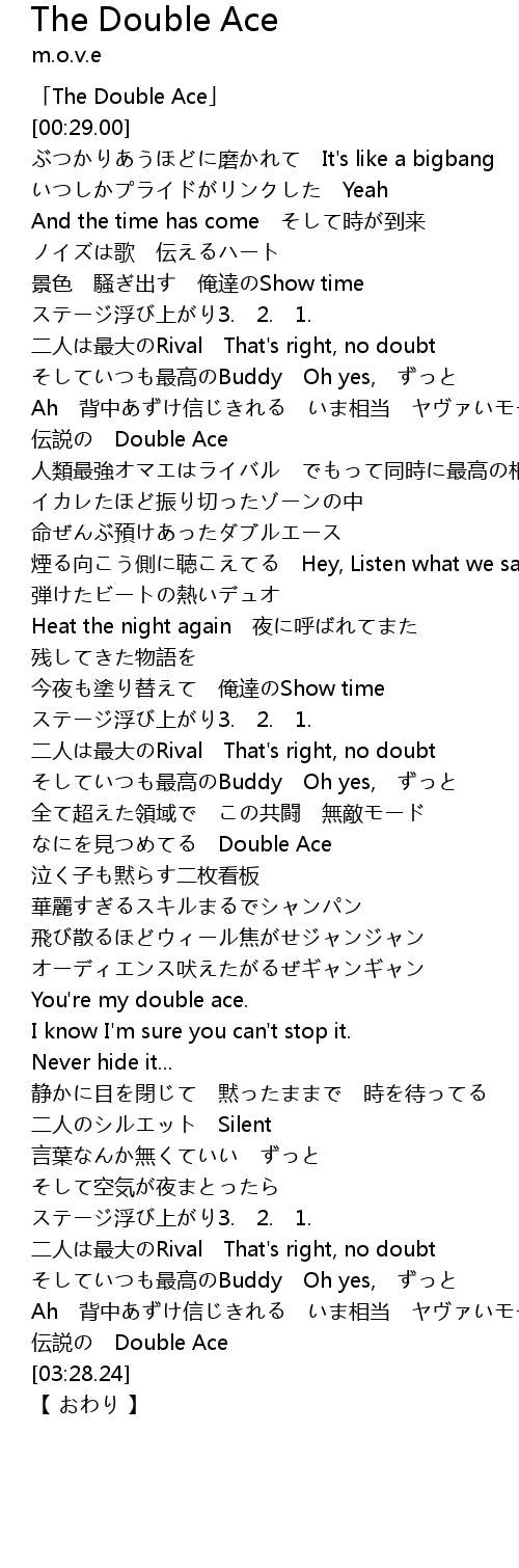 | [01:21.62] | 命ぜんぶ預けあったダブルエース |