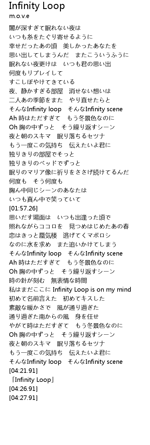 | [04:17.55] | そんなInfinity loop そんなInfinity scene |