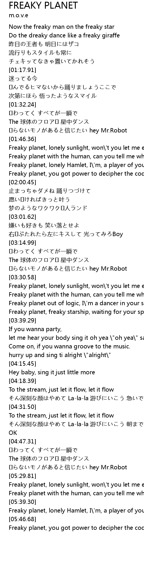 | [03:37.76] | Freaky planet, freaky starship, waiting for your spacy remix |