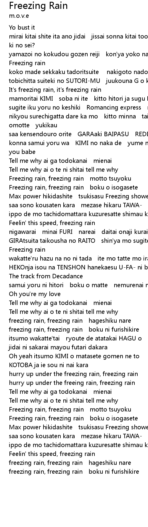 | freezing rain, freezing rain hageshiku nare | |