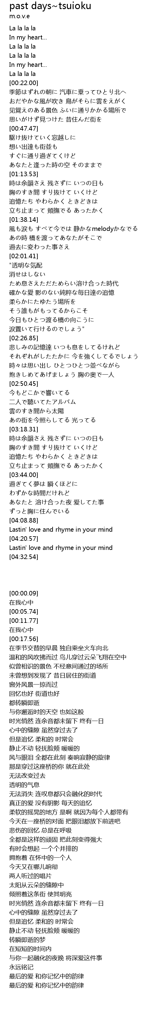 | [01:13.84] | 時は余韻さえ 残さずに いつの日も |