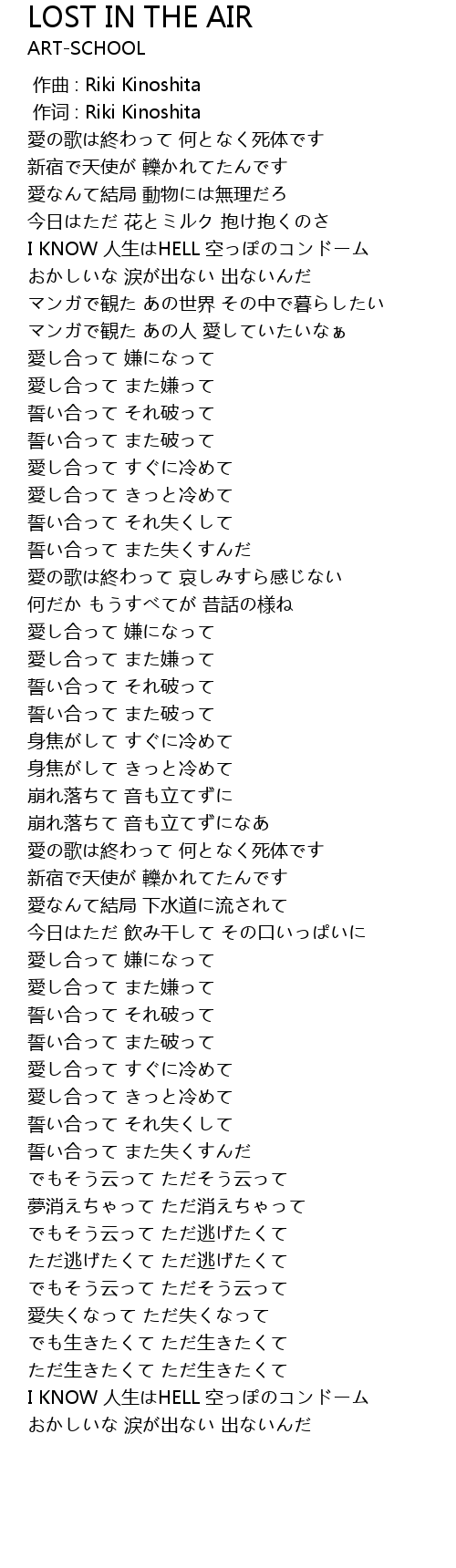 | [03:21.74] | 愛の歌は終わって 何となく死体です |