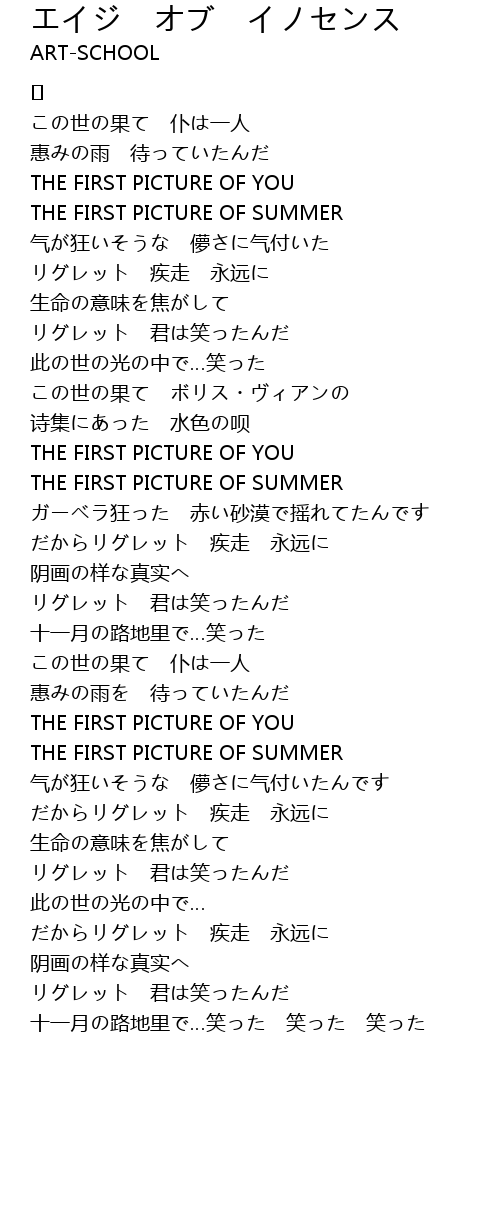 | Song | エイジ オブ イノセンス |
