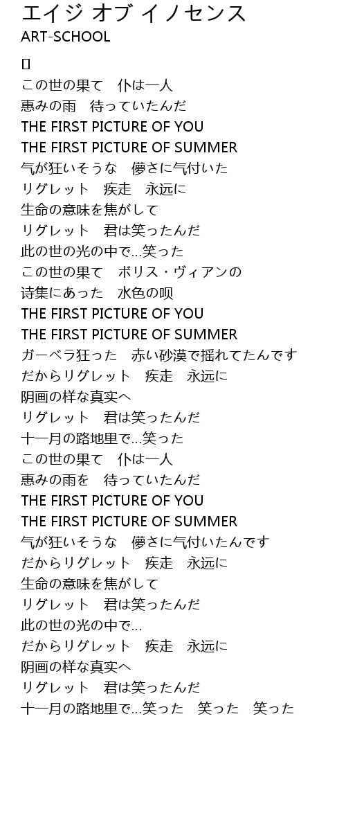 | Song | エイジ オブ イノセンス |