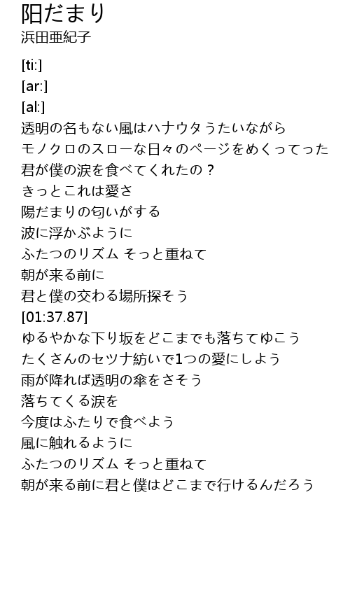 | [01:00.46] | 陽だまりの匂いがする |