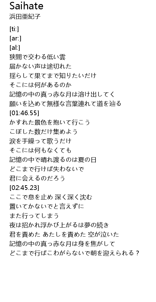 | [03:43.54] | 君を責めた あたしを責めた 空が泣いた |