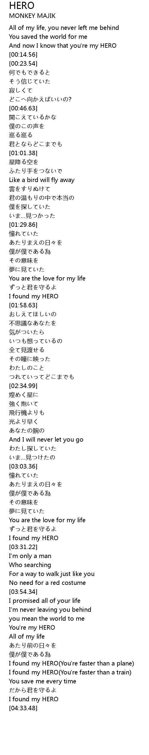 | [04:17.31] | I found my HERO(You're faster than a plane) |