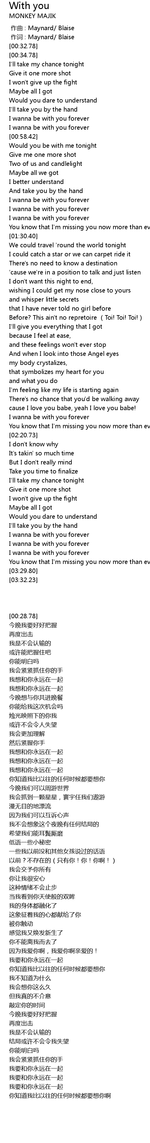 | [00:00.00] | zuò qǔ : Maynard Blaise |
