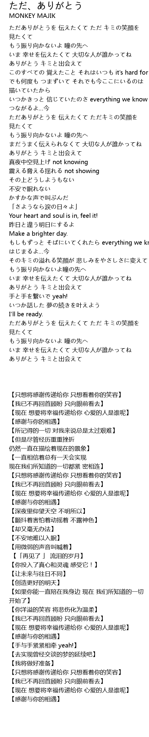 | [01:31.17] | ありがとう キミと出会えて |
