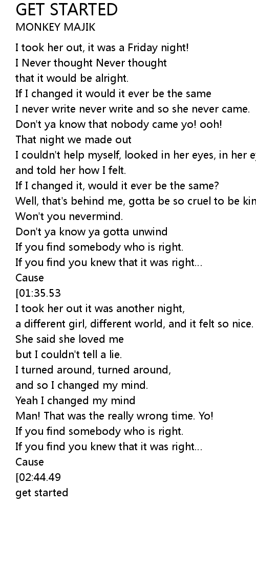 | [02:48.20][02:44.49][02:40.56][02:37.09][02:33.09][02:29.18] | Everybody wants to get started |