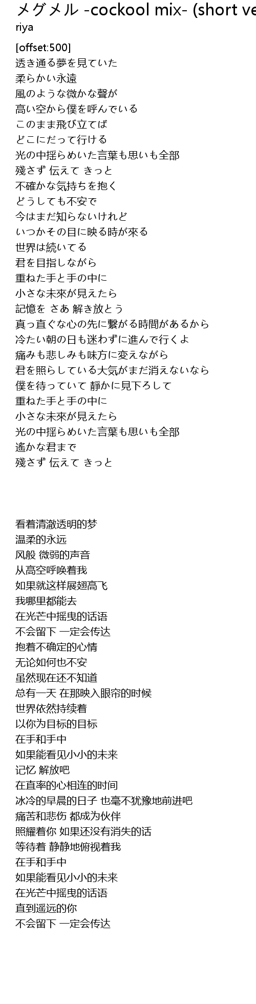 | Song | メグメル -cockool mix- (short ver.) |