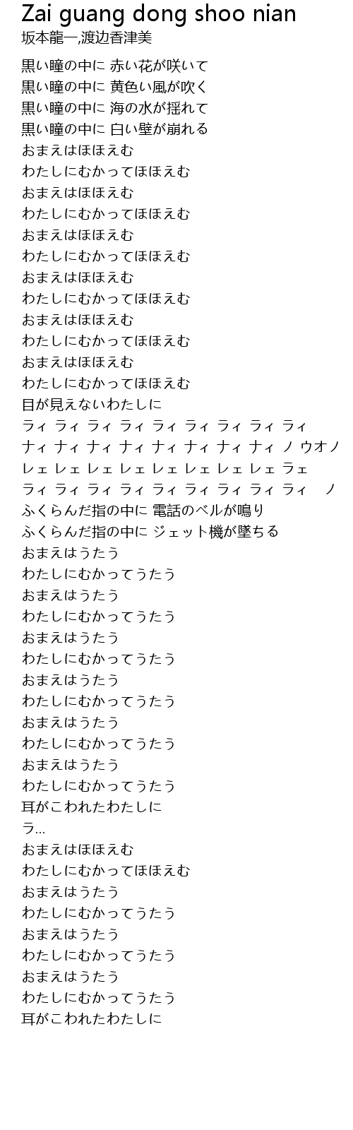 | [02:51.08] | レェ レェ レェ レェ レェ レェ レェ レェ ラェ |