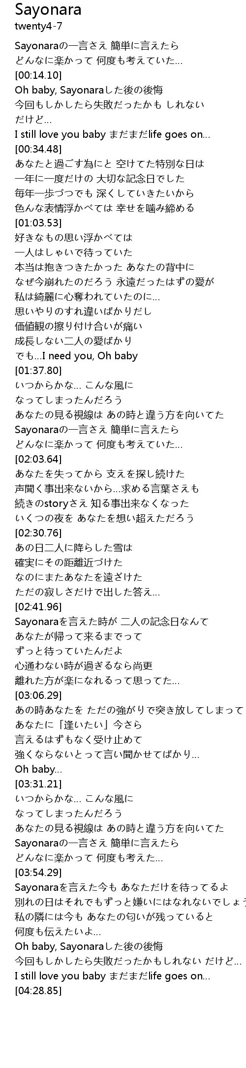 | [04:18.37] | Oh baby, Sayonaraした後の後悔 |