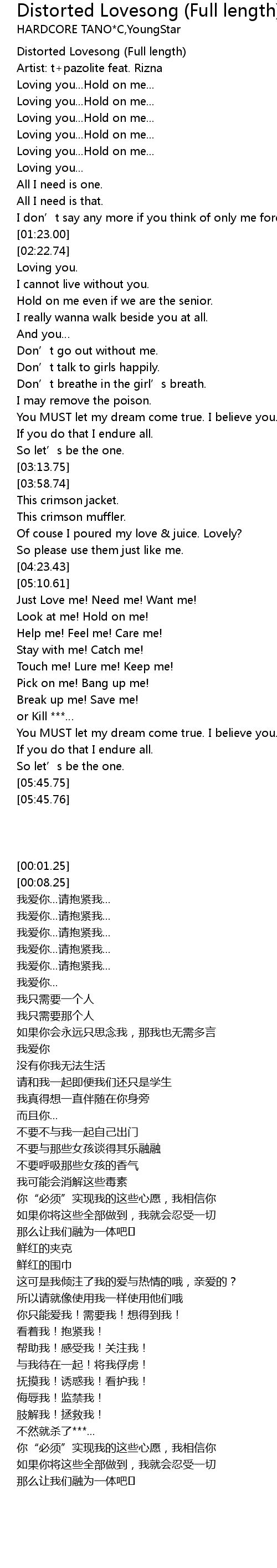 | [00:01.25] | Distorted Lovesong (Full length) |