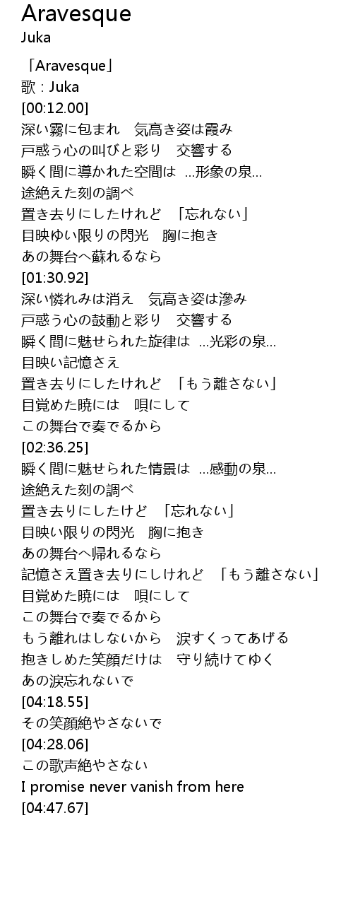 | [00:00.00] | 「Aravesque」 |