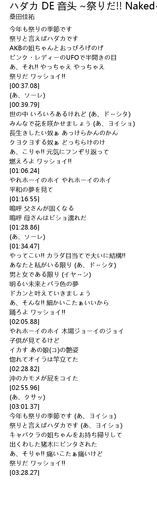 | [03:08.50] | 祭りと言えばハダカです (あ、ヨイショ) |
