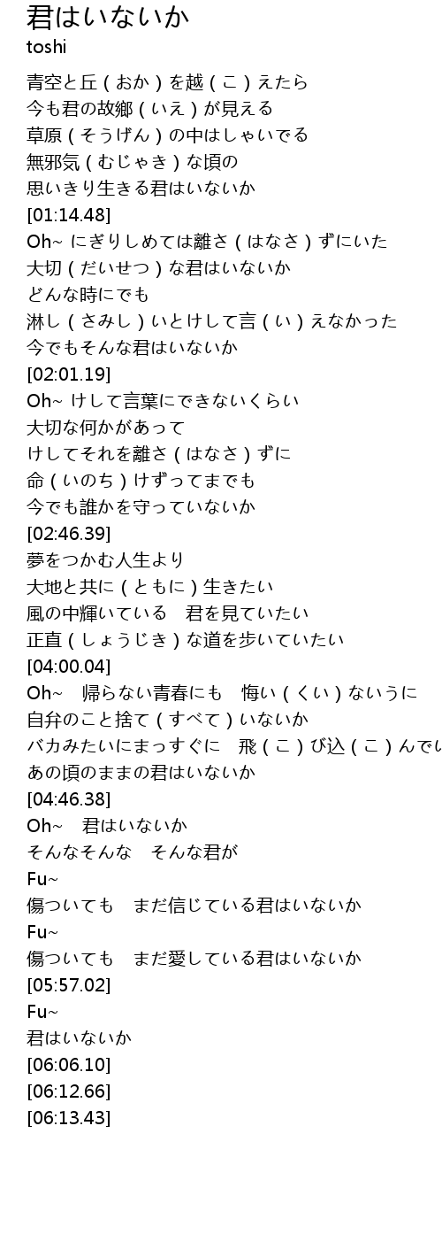 | Song | 君はいないか |
