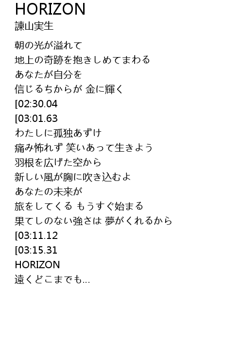 | [01:14.55][02:30.04][02:57.40] | HORIZON |