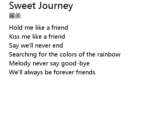 | [00:18.73] | We'll always be forever friends |