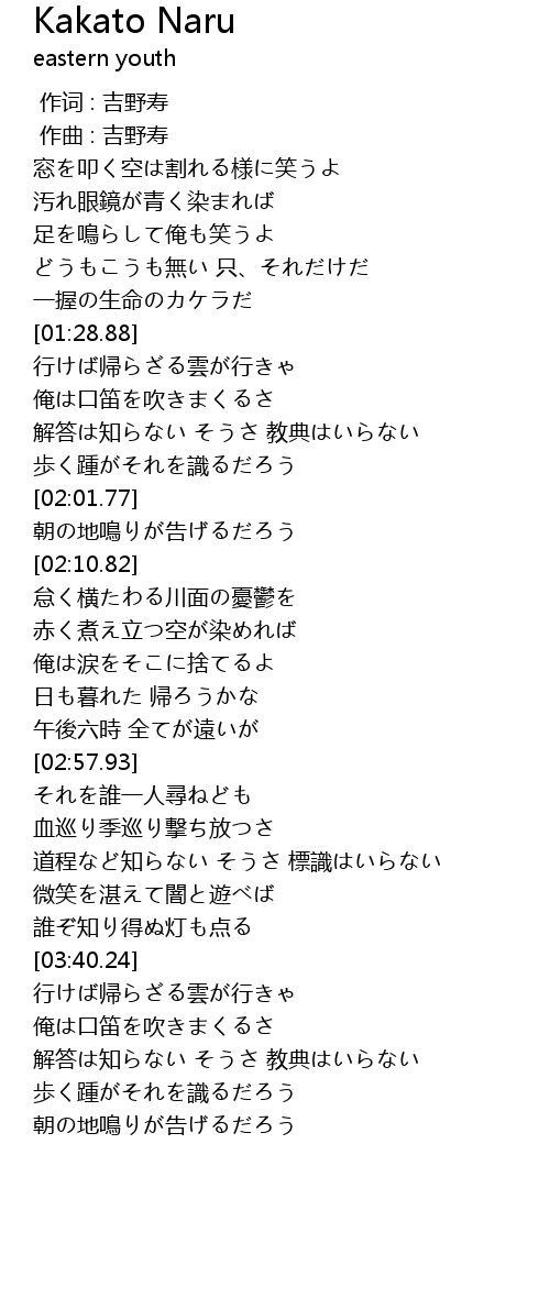 | [01:40.43] | 解答は知らない そうさ 教典はいらない |