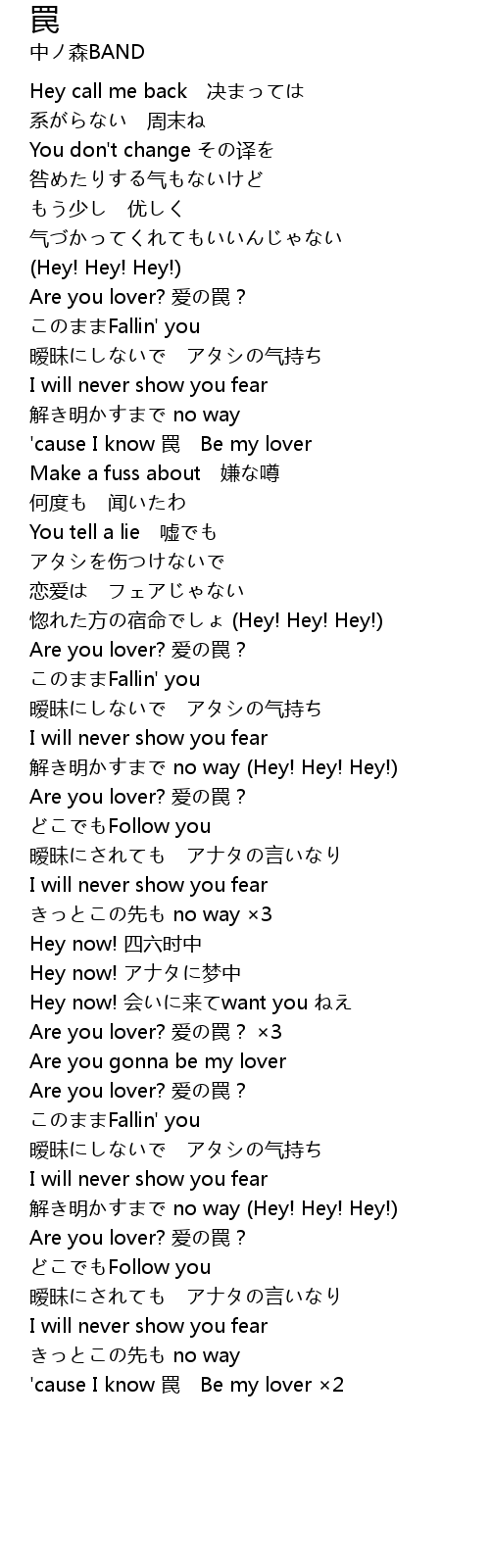| 'cause I know 罠 Be my lover ×2 |