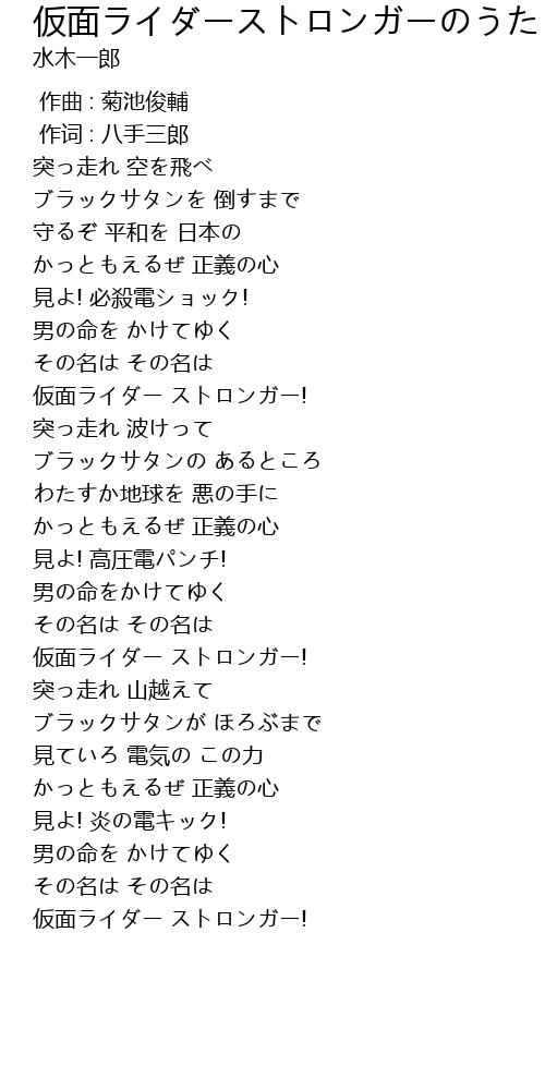 | [02:45.560] | 仮面ライダー ストロンガー! |