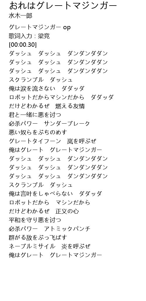 | [00:00.10] | グレートマジンガー op |