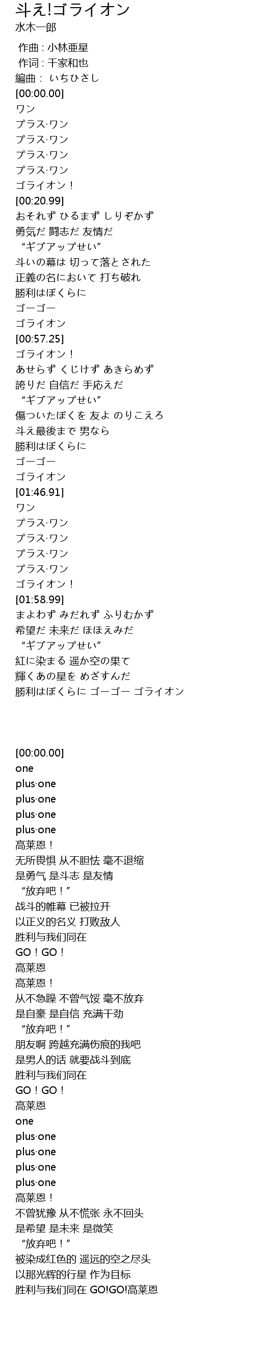| [01:55.89] | プラス·ワン |