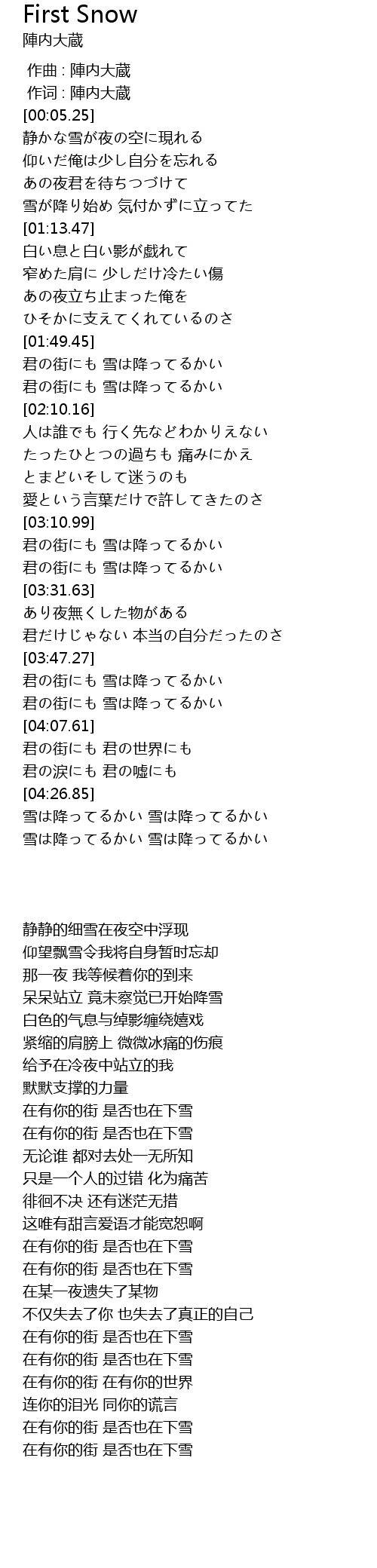 | [03:23.97] | 君の街にも 雪は降ってるかい |