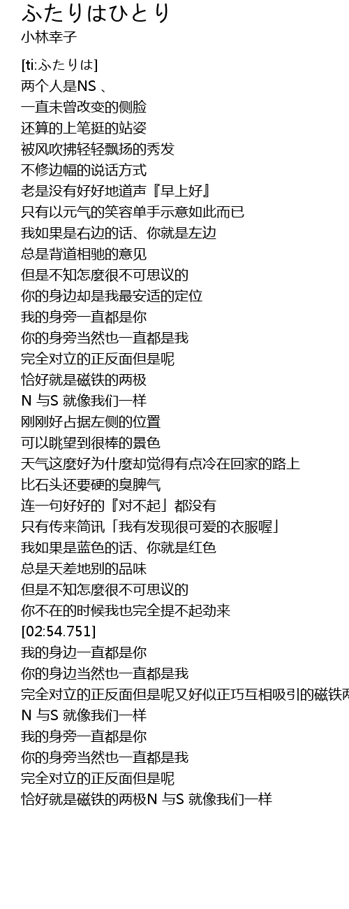 | [03:11.403] | 完全对立的正反面但是呢又好似正巧互相吸引的磁铁两极 |