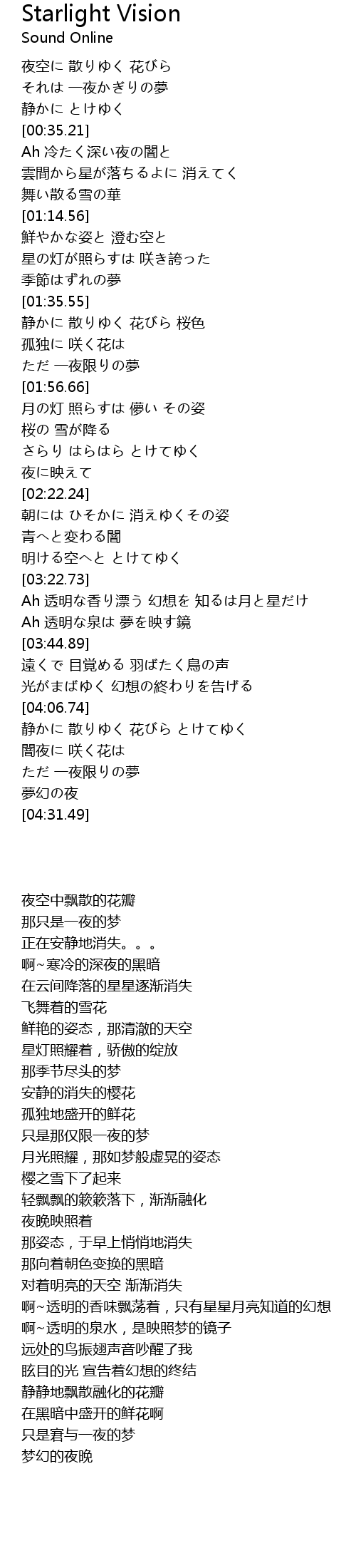 | [00:00.00] | 夜空に 散りゆく 花びら |