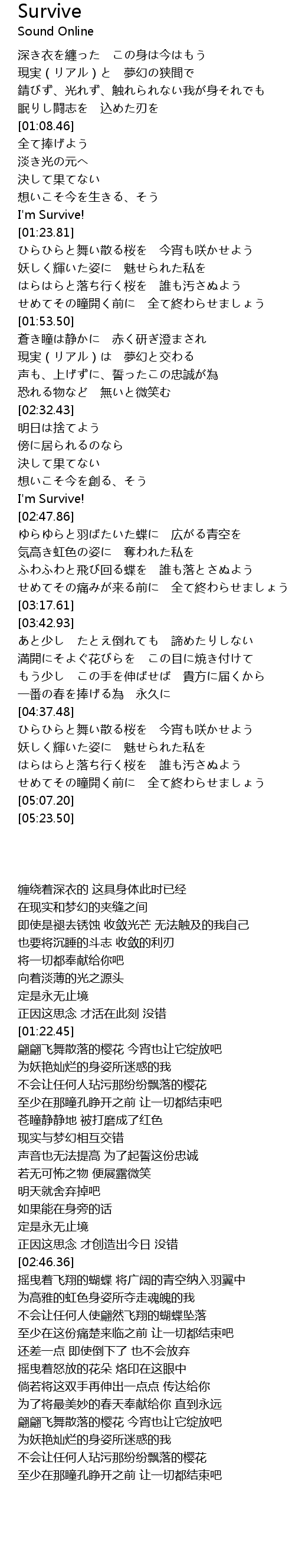 | [01:22.45] | I'm Survive! |