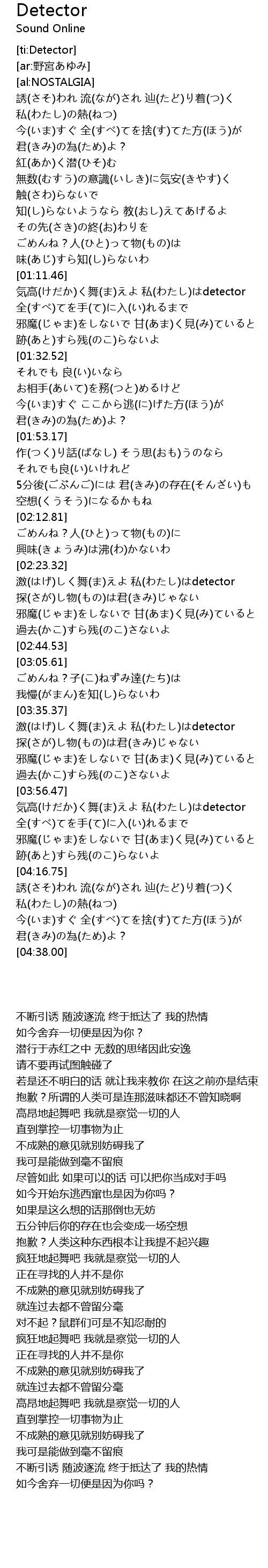 | [03:57.52] | 気高(けだか)く舞(ま)えよ 私(わたし)はdetector |