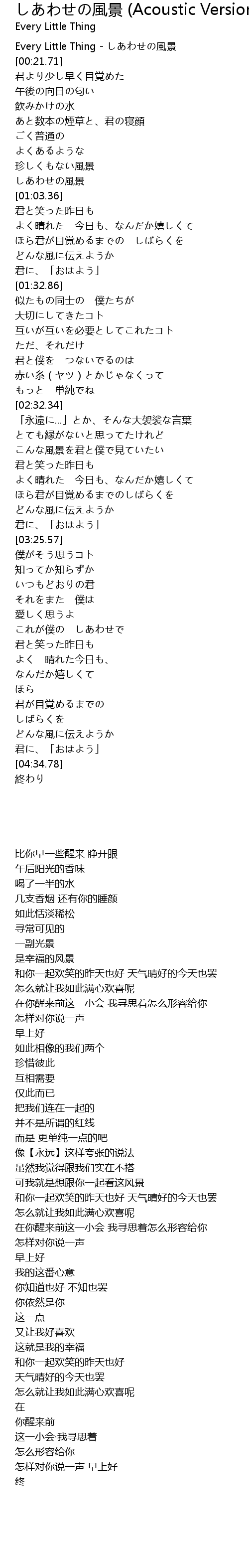 | [00:00.00] | Every Little Thing - しあわせの風景 |