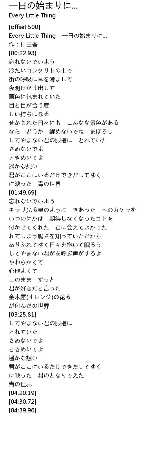 | [00:00.00] | Every Little Thing - 一日の始まりに… |