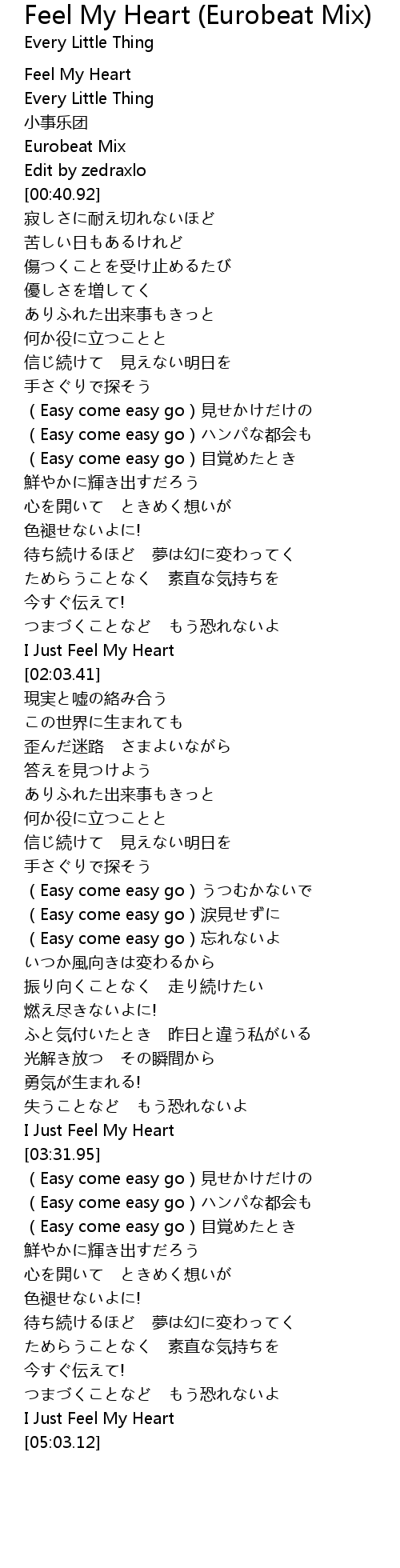 | [03:28.55] | I Just Feel My Heart |
