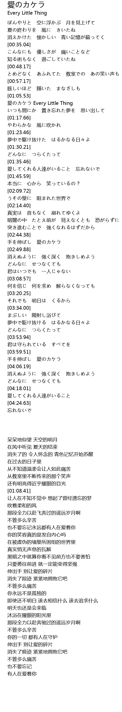 | [01:08.41] | 愛のカケラ Every Little Thing |