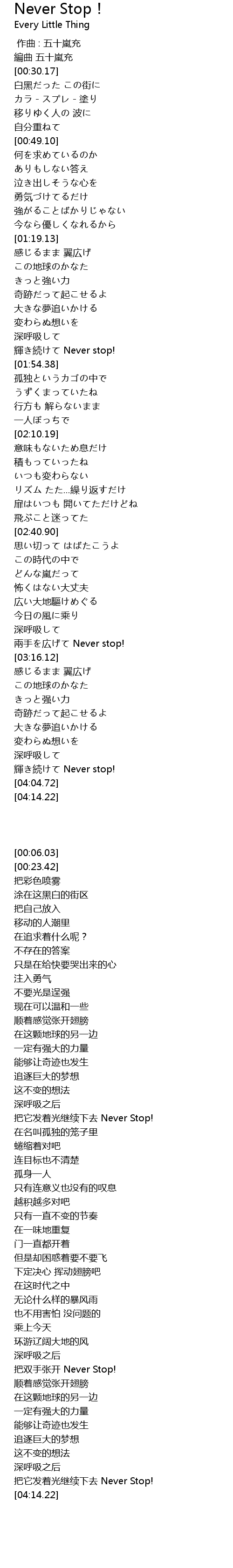 | [03:57.24] | 輝き続けて Never stop! |