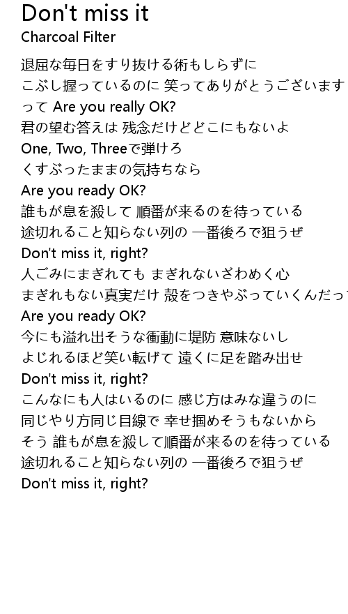 | 途切れること知らない列の 一番後ろで狙うぜ | |