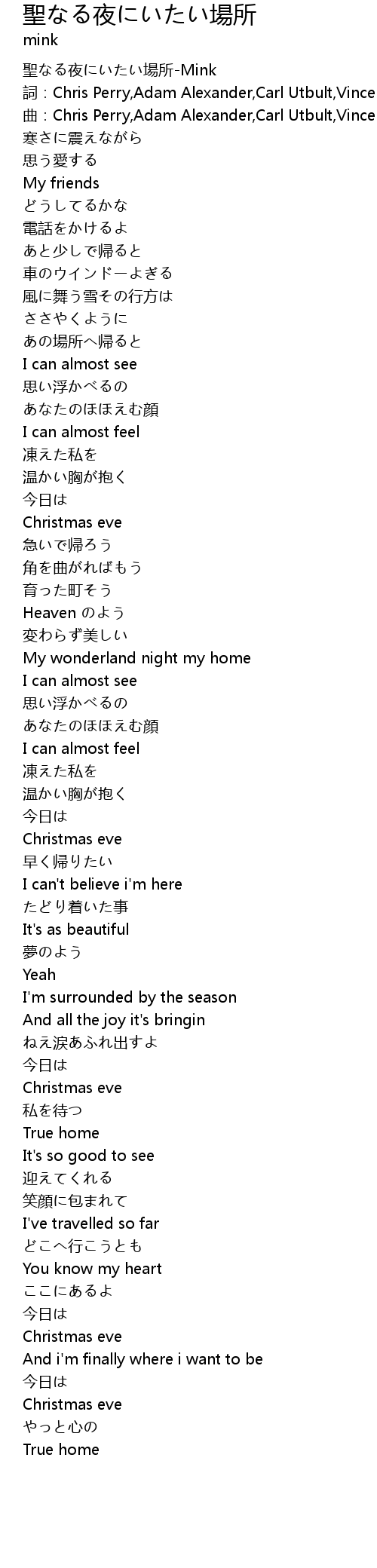 | [00:00.891] | 聖なる夜にいたい場所-Mink |