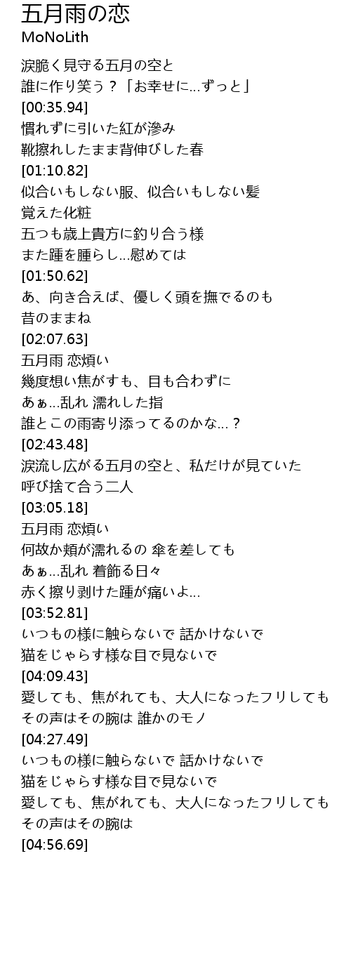 | [02:44.64] | 涙流し広がる五月の空と、私だけが見ていた |