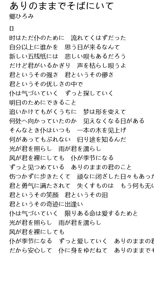 | Song | ありのままでそばにいて |
