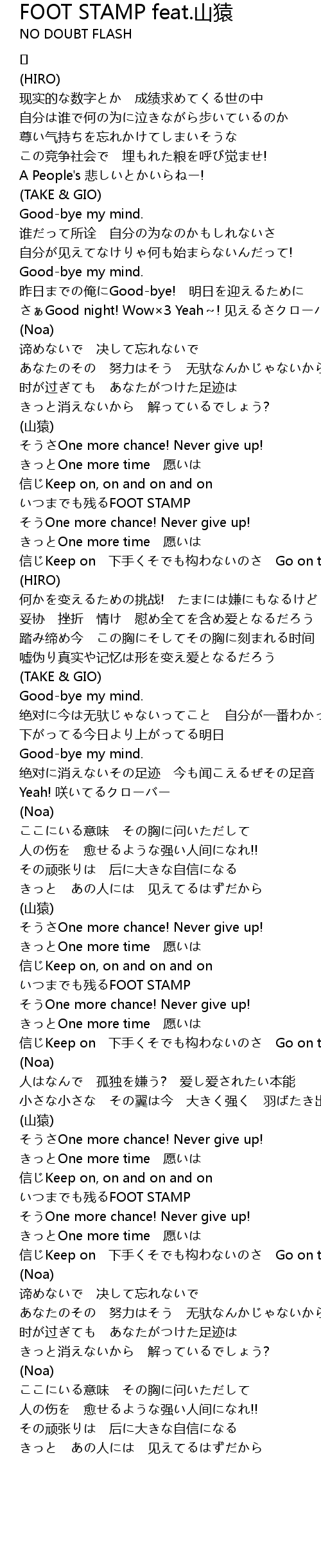 | 绝对に消えないその足迹 今も闻こえるぜその足音 | |