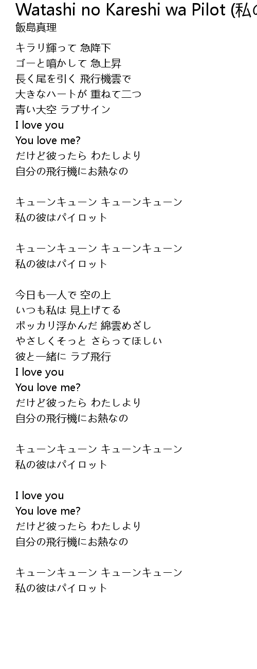 | Song | Watashi no Kareshi wa Pilot (私の彼はパイロット) |