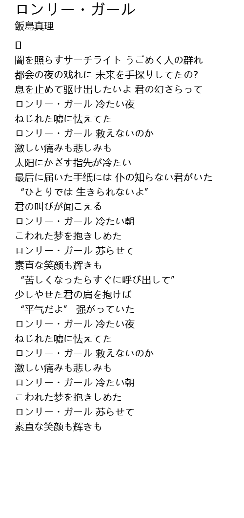 | 都会の夜の戏れに 未来を手探りしてたの? | |